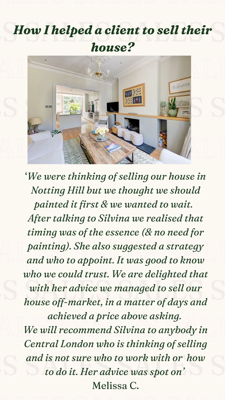 Take it from my most recent sale, a house in Notting Hill, that sold off market, in a matter of days and achieved above asking price. But more importantly, the client felt that in market that is so fragmented, they knew who to trust and what to do.